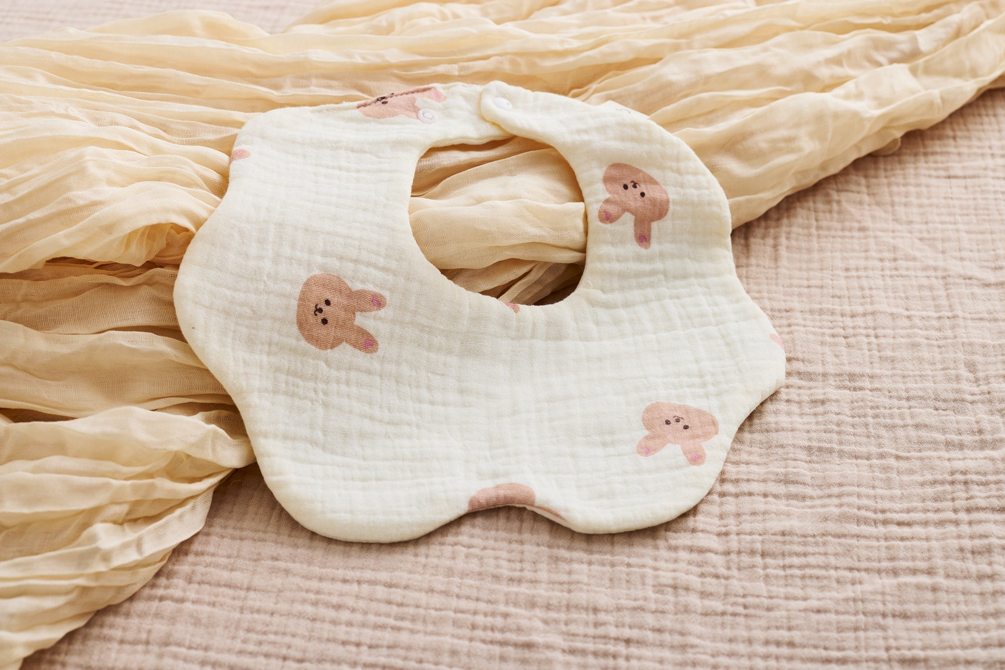 Made from 6 layers of breathable muslin cotton, these bibs are gentle on delicate skin and quick to absorb drips and spills. Lightweight, soft, and easy to wash - perfect for daily wear.